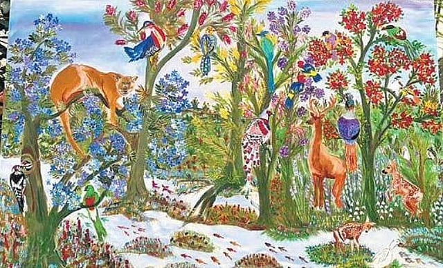 Talking about her paintings, Irfan says, “You’ll find that most of my paintings are of open skies, mountains, gushing streams, animals and birds.” Starting at `75,000 and going up to `1,40,000,
