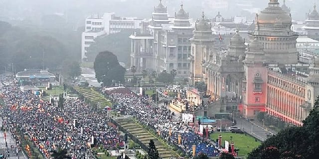 The Praveen Shetty faction of Karnataka Rakshana Vedike took out a march carrying the Kannada flag in Mahadevpura. The Kannada Vatal Paksha, led by Vatal Nagaraj, offered puja to Goddess Bhuvaneshwari and held a celebration rally at Mysuru Bank.