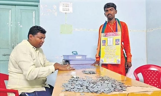 KALABURAGI: An independent candidate from the Yadgir constituency stumped election officials on Tuesday, giving them the Rs 10,000 election deposit money in one rupee coins.