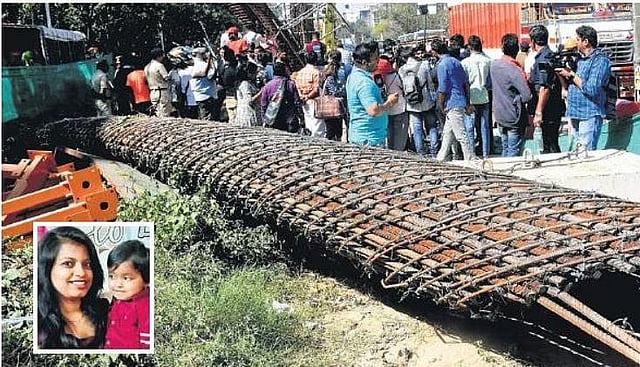 BENGALURU: 63-year-old retired commissioner of Urban Development Authority from Gadag, Vijay Kumar G Sulakhe, was in for a shock. Little did he know the traffic jam that he was stuck in on Outer Ring Road in HBR Layout was caused due the under- construction pillar falling and claiming the life of his daughter-in-law and his 2.6-year-old grandson.