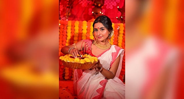 BENGALURU: If there is any colour that could symbolise the spirit of Durga Puja, it is red and white. A nine-yard fabric in this colour combination not only makes a powerful statement but also makes for a gorgeous look. Fashion model Pranwesha Kundu has planned this look for the last day of Durga Puja.
