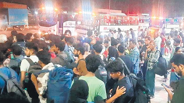 Kempegowda Bus Terminal, Kalasipalya bus stand, Kengeri bus stand and others were overcrowded with people waiting for buses. With large groups of people leaving the city, as many as 465 BMTC buses will operate on KSRTC routes on Friday and 40 buses on Saturday.