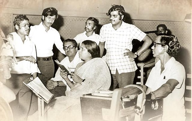 Representative Image: Ambareesh, Rajendra Singh Babu, singer Vani Jayaram in a film made by Shankar Singh.
