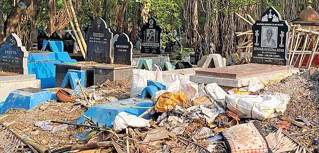 People often complain that the graves are littered with dried and discarded garlands. However, there is not a single dustbin available in the graveyard,” a worker said.