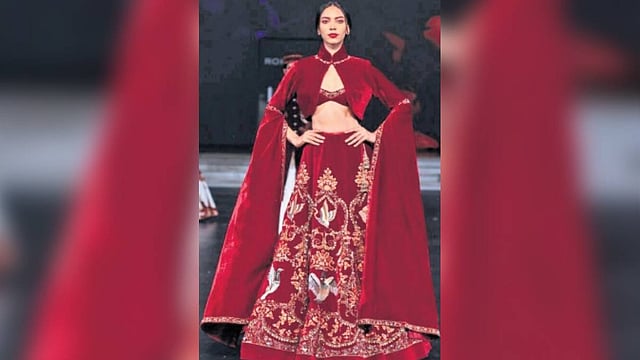 Who can forget the stunning pietra dura collection inspired by the exquisite inlays of the Taj Mahal - creations like the gorgeous anarkalis that seemed to step out of a Mughal miniature, or the show-stopping Jalebiya tent dress that flowed like a river of moonlight, its hundred meters of fine muslin a testament to his innovative genius?