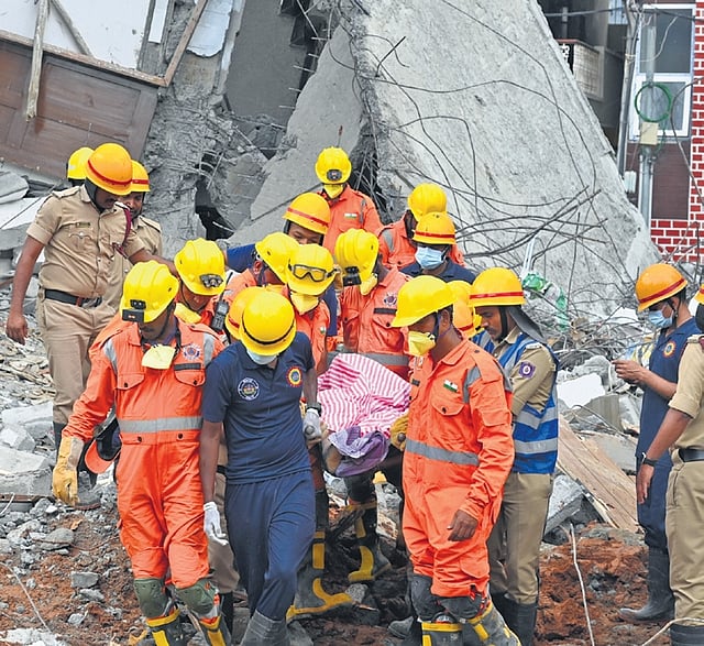 Sohail, a friend of one of the deceased, Armaan, said he had a narrow escape as he was outside at the time. He mentioned that seven labourers from Bihar were working at the building that day. Stating that all the deceased were from very poor backgrounds, Sohail lamented that their families would be devastated. The group had been carrying out flooring work on the third and fourth floors since August, he told TNIE.