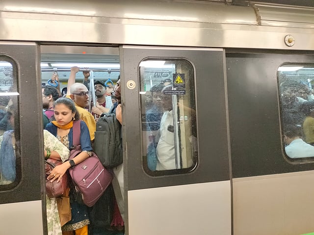 Sunil Sharma, a systems analyst at an MNC, told TNIE, “The Metro train I boarded was packed to the brim around 6 PM when I got on at K R Pura Metro Station. This is a similar scene during peak hours daily. The train had travelled for some time when I noticed a woman showing signs of giddiness and falling down.”