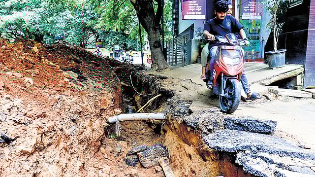 The stretch of 15th Cross between Chitrapur Circle and Mohammedan Block has been excavated and left open as part of the White-Topping Road Development Project proposed for 8th Main Road —from 7th to 18th Cross, undertaken by the BBMP in coordination with BWSSB, BESCOM and Gail Gas. The project also involves replacing decades-old BWSSB utilities, some over 50 to 60 years old, due to which the road has been dug inside out and now lies in an unusable state.
