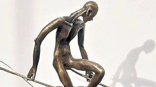 BENGALURU: A woman, bronze-skin gleaming, is poised with one foot on a round stone and the other in the air as two little birds lift off from the palm of her hand. Frozen in a moment of lightness and movement, it almost appears as if, at any moment, she could exhale a foggy breath onto the birds and take flight right alongside them. This towering sculpture, 9 feet high, is one of the highlights of seasoned Bengaluru-based artist, Dimpy Menon’s upcoming exhibition titled Dream Whispers at Gallery Time and Space, Lavelle Road.