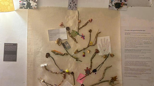The exhibit has several interactive elements too, particularly in Hina Siddiqui and Ayera Choudhary’s exhibits, which ask visitors to take or leave something behind, respectively. “Hina’s collections of recipes have been gathered from her blood family and chosen family, bringing together how recipes are handed down, but in this way, it also becomes an exchange – visitors are prompted to carry some of these recipes home with them, too. Meanwhile, Ayera has all sorts of writing and trinkets from their queer polyamorous household in the form of a tree that people contribute to. It’s a way of looking at heritage as a growing, living thing for queer people – sometimes, we need to construct our heritage,” says Dasappa.
