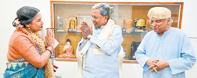 BENGALURU: Veteran actor Shabana Azmi, who was chosen for the Lifetime Achievement Award for her contribution to Indian cinema, as part of the 16th Bengaluru International Film Festival, was presented the award by Chief Minister Siddaramaiah at his official residence, Cauvery, on Monday. He also handed over the cash prize of Rs 10 lakh to the actor.