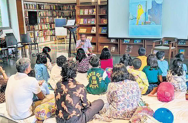 Aruna Gopakumar, Founder of The School of You, was the storytelling facilitator on October 5. Through various stories, she made around 24 children, with their parents, engage in one of the primary lessons reading has to teach us: empathy. “I feel that emotional and social skills are built through these interactions. It is important to look at stories from different angles. Learning is not a one-way street,” she added. She asserted that the participation of the parents helped in warming the kids – essentially strangers – to each other.