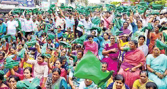 Addressing the protesters, R Ashoka said that the Congress government is acquiring 9,600 acres of land in Bidadi, Byramangala, and Kanchugaranahalli under the Greater Bengaluru Development Authority. Of this, 6,500 acres are agricultural land.