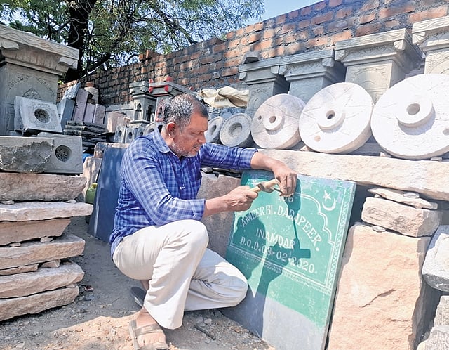 VIJAYAPURA : Bent over a slab of dark granite, carefully chiselling the name of the deceased with practiced precision, 54-year-old Abdul Aziz Kadkol represents a fading tradition of hand-crafted stone carving that once flourished in the region. For decades, he has dedicated his life to an occupation inherited from his forefathers, a craft now struggling to survive in the age of machines.