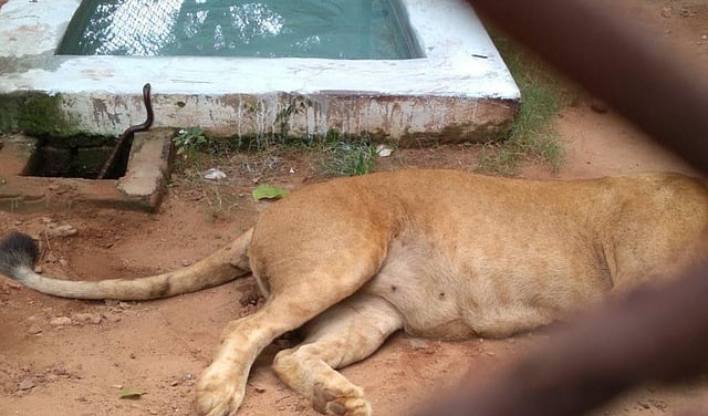 The Zoo deputy director Sanjeet Kumar said an animal keeper noticed Ganga in ailing condition at around 8.30 am and informed the veterinarians. A team reached the spot and found muscular paralysis and other symptoms of snakebite in the lioness.