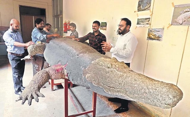 In order to restrict use of plastic and fibre to bare minimum and avoid mixing of micro-plastics, the RMNH has also developed bio-degradable adhesive using vinegar, cornflour, glycerin and water for its use in the model making. The museum which so far has created bio-degradable and recyclable waste models of a life-size African silverback gorilla, giraffe, Komodo dragon and sting ray is now working on an actual size hippopotamus model as well as a 23-feet long salt water crocodile, recorded in Bhitarkanika National Park in the past.