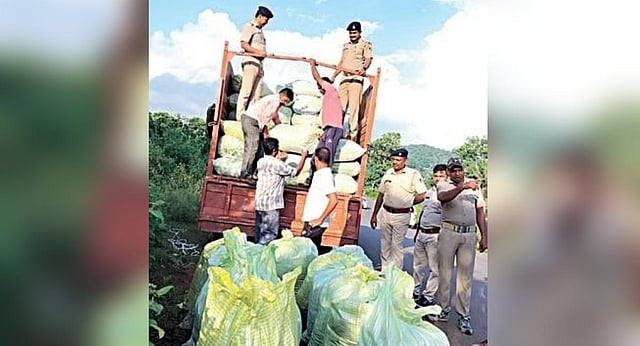 While the driver and the helper managed to flee, police suspect at least one pilot vehicle was escorting the mini truck. The seized truck was found to have two different registration numbers. Initial investigation suggests the consignment was procured from Mahagudi within Adava police limits, said sources.