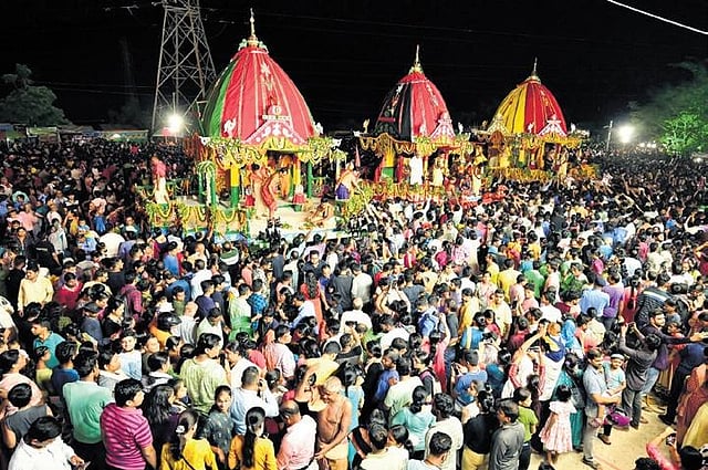 The Iskcon temple at Nayapalli remained one of the major crowd-pullers as hundreds congregated near the temple to take part in the festival. Amid reverberating sounds of conch shells, gongs and bells, devotees were seen dancing with devotion as the chariots headed towards the Mausima temple at Unit VIII here.