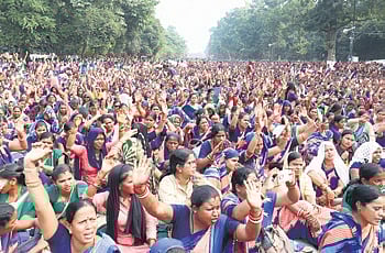 BHUBANESWAR : Even as hundreds of support staff under the Mission Shakti department on Monday staged a sit-in protest outside the Assembly over various demands, the Opposition BJD urged the state government to release their salaries.