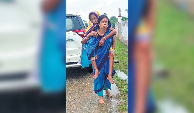 Tasked with the responsibility of looking after the health of people shifted by the local administration, the ASHA worker decided to carry the old woman on her back to the cyclone shelter which was 1.5 km away.