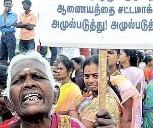 Others were less polite. “This concerns more than 50000 people, fisherfolk and otherwise. Livelihoods are going to be lost. If the government doesn’t listen to us we will blockade the Chennai Port with our fishing boats,” said an angry member of the crowd.