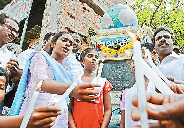 Twenty-seven years ago, the stretch of Kamarajar Salai leading to the Marina Beach witnessed a month-long protest by fishermen, which ended up in police firing, leaving five of them dead. The protest was against an attempt to evict them in order to beautify the beach. Members of the fishing community, on Tuesday, commemorated the incident by paying tributes at the memorial site in Ayodhi Kuppam. The memorial was jointly organised by the South Indian Fishermen Welfare Association (SIFWA) and the Tamil Nadu Meenavar Makkal Sangam.