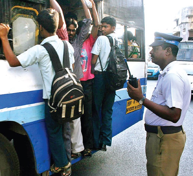 Traffic police officials felt that it might be impossible to collect details of all students travelling by footboard. “Traffic cops are posted in almost all bus stops near schools and colleges during morning and evening peak hours. We are putting our best foot forward to prevent dangerous travel ,” a police official said.