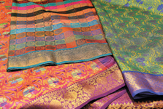 Textile giant RmKV silks has launched innovative trendy silk sarees for this festival season. While hamsa varna is a contemporary version of annam chakram silk sarees, wherein the Annams and Chakrams are presented in over 3,000 unique colours, Linolite silks are light weight silk sarees using bold and vibrant colours to appeal to the younger age-group. Jadau kalamkari saris have 70 colours in the motif combined with kalamkari work. If you are not for the heavy silk sarees, you have the option to buy light weight satin sarees bordered with pearls or the fancy silk with Kundan works. “We have different varieties for the kids and men’s section as well.