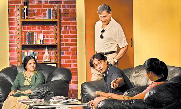 P C Ramakrishna as the tortured husband of the eponymous Mangalam and the modern day dad, fit perfectly into both the moulds. So it wasn’t at all surprising that all the young girls in the audience whistled at his costume change that made him go from 1960s wife-beater to chic, uber-cool dad. Sumitra N Gautama, the other anchor of the play, saw an equal transformation — from bitter widow to a conflicted housewife.