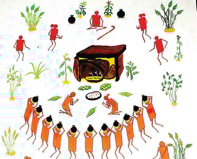 The day to day life of the Kurumba, the tribe from The Nilgiris, is on paper in a combination of seven basic natural colours. And who other than the tribal people themselves can do that best?