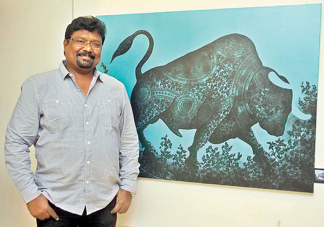 With an equal ease in conveying the breeziness of nature or the intricacy of ornaments, creativity for Nagesh comes out of a rabbit’s hat. His paintings play with your sense of perception, make you guess a little and become a participant in the visual journey. The exhibition is on at Prakrit Art Gallery till September 25.