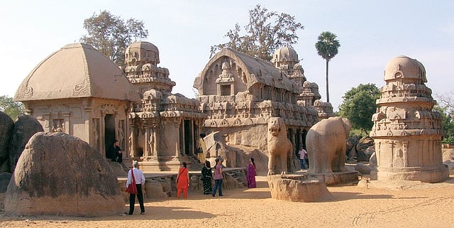 Mamallapuram, also known as Mahabalipuram, was ruled by the Pallava Kings from 600 to 750 AD. Kancheepuram was its second capital. The place, which lies on the Coromandel Coast, faces the Bay of Bengal. In the 7th century, it was a port city of South Indian dynasty of the Pallavas. The temple of Mamallapuram, which portrays the events described in the Mahabharata, was built largely during the reigns of king Narasimhavarman and his successor Rajasimhavarman. The temples showcase the shift from rock-cut architecture to structural building.