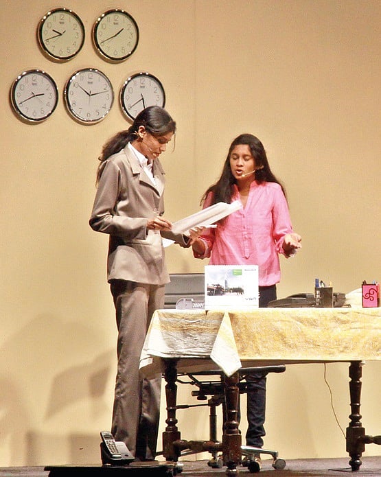 Nevertheless, coming up with a play that made the audience laugh, applaud and think in eleven scenes and in close to two hours, Ajit Chitturi from Thespian en seems to have succeeded yet again in staging a play with 10 actors.