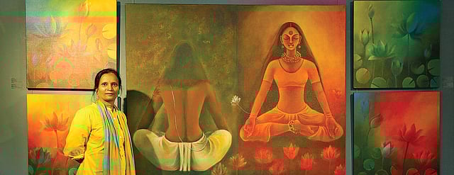 CHENNAI: Eyes shut, peace and tranquility writ large on the face. There’s a certain inexplicable comfort looking at the figures of women painted in red and blue amid lotuses. “I’m happy when people find my paintings peaceful. Everyone’s so busy with their own things, there’s chaos all around. I try to bring some peace onto the canvas,” says artist Manisha Raju, whose works are on display at Gallery Veda for the next few months.