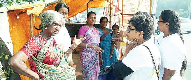 However, Sridevi’s case tells a different story. Living in a makeshift tent on the footpath of Saidapet’s Bridge, her house was destroyed in the floods last year and continues to remain so. Beginning a new life and home on the street (literally), a lot of times she has faced men sitting inside or around the tent, purposely. “We have also complained to the police but what more can we do when the house is bare open like that?” she questions. Harassment is just another woe added to her list.