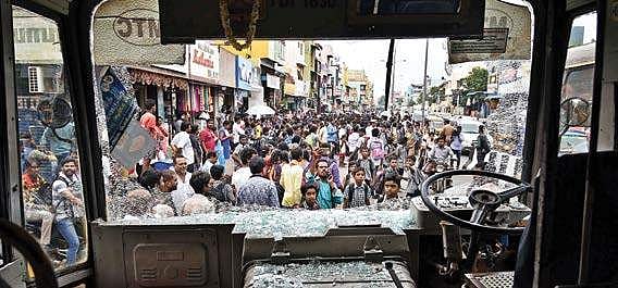In the evening, as students refused to disperse, police officers rushed to the school and held talks with them and showed them the FIR copy. Later, more than 200 students blocked the Sathangadu Road and walked all the way to Tiruvottiyur High Road where the assistant commissioner of police’s office is located and protested again. A few of them pelted stones at an MTC bus smashing its windshield and created traffic jam for more than an hour. The crowd dispersed only after a few senior police officers assured them of proper legal action.