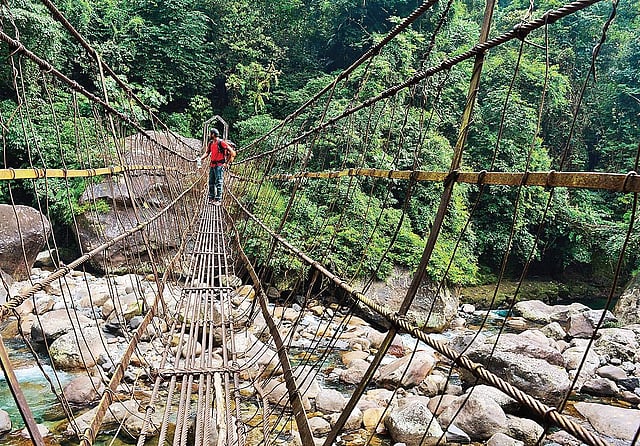 The living-root bridges of Meghalaya are well hidden inside its forests. Tyrna is the last point till which vehicles can ply. You can park your cars/bikes here, get a parking ticket (`40) and begin trekking down the concrete steps toward Nongriat, the village where the Khasi tribes live, the legends who built, or rather wove, the living-root bridges. (Tip: The local Khasi boys will offer to be your guide throughout the 3-hour trek for `800, but it's not really necessary unless you have heavy luggage, or are not the wilderness outdoor-y type).