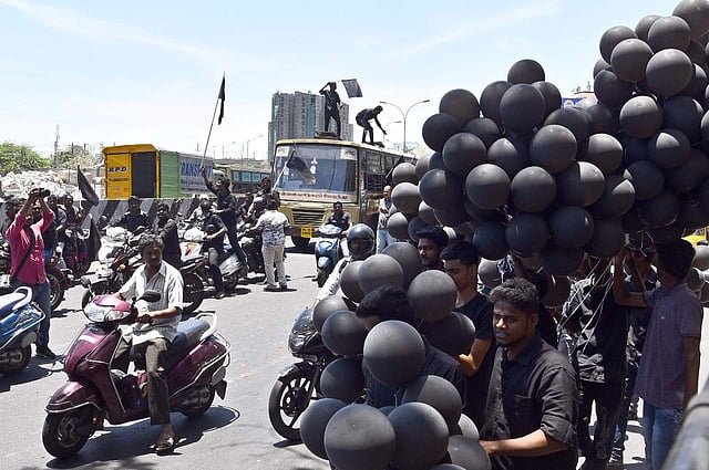 Pazha Nedumaran of Thamizhar Desiya Munnani was arrested for staging black flag. Supporters of RK Nagar MLA, TTV Dhinakaran released black balloons as a form of protest.
