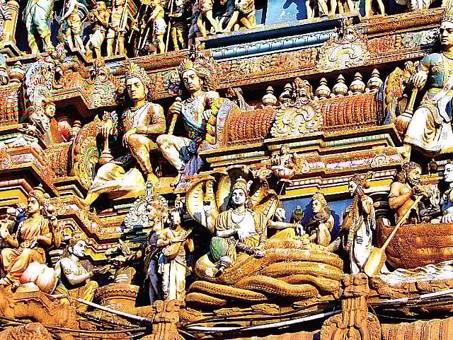 A fine example would be the hind legs of a gazelle and head of a lion and ears of a horse and tusk of an elephant, and so on, that you find in the dramatic Yali pillars of the Vijayanagara period.