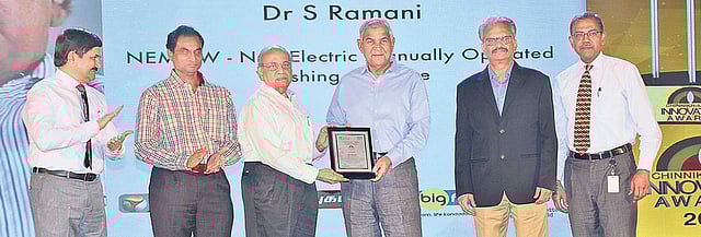 S Ramani (third from left) receives the Chinnikrishnan Innovation Award from Suresh Krishna, chairman, Sundaram Fasteners