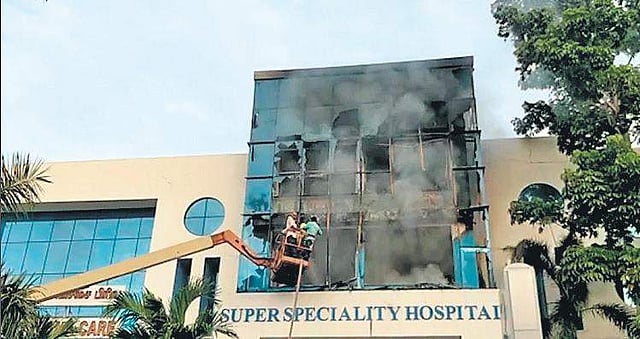 The fire at the private hospital at Kelambakkam was suspected to be due to electrical fluctuation. A preliminary probe revealed that the smoke billowed from the air conditioner of the pharmacy on the first floor and spread to the second floor. The pharmacy staff around