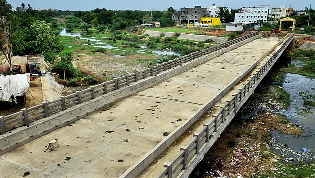 The bridge has been left in a neglected state with no roads nor railings. The pathway was just filled with sand and stones causing a bumpy ride to commuters. ''No railings on both sides posed a risk of people falling in the Cooum river 20 feet below,'' said the resident.