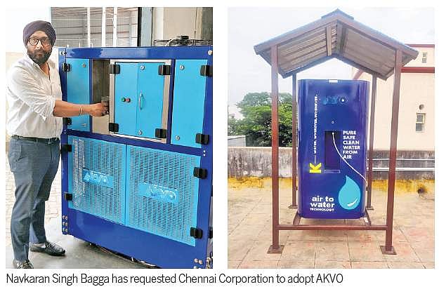 CHENNAI: As Chennai grapples with its worst water crisis in years, entrepreneurs are wooing residents by offering solutions to quench the city’s thirst. Navkaran Singh Bagga, a Kolkata-based entrepreneur, is hopeful that his innovation is the answer to all water problems. AKVO, his product, provides safe and pure drinking water using the Atmospheric Water Generator (AWG) technology, which replicates condensation by simulating a dew point, which allows it to make water continuously, even in low humidity conditions.