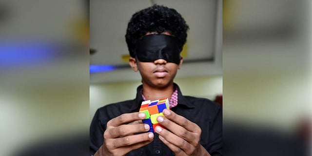 CHENNAI: With his eyes blindfolded, I Dheepak Arjun’s fingers deftly flick the rows of the Rubik’s cube back and forth. At one point, he rubs the individual squares, taps the cube while holding it up to his ear, and sniffs the object. In about 30 seconds, the completed cube lays in the 15-year-old’s palm.