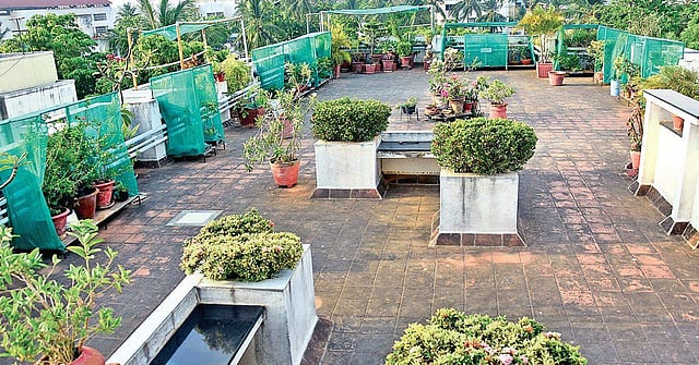 Ramkumar believes that apart from growing plants, the aesthetics is also important. He has placed his planters along the walls of the terrace ensuring it doesn’t occupy the entire space and has cut glass bottles, old pipes and replaced them as planters.