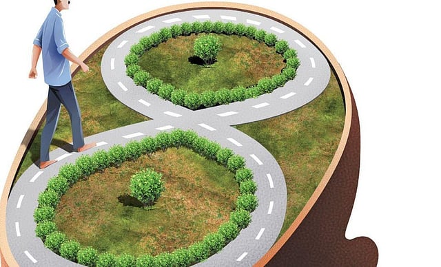 When I walk, my mind is completely involved in the activity and does not deviate easily. It has improved my eyesight and memory as well,” she points out. To practise infinite walking, all you need to is draw the shape of 8 by joining two circles of approximately six feet in diameter in south and north directions.