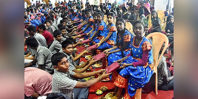 CHENNAI: Around 500 boys performed ‘Padha Puja’ for girls at the 11th Hindu Spiritual Fair on Friday, being held at Guru Nanak College in Velachery. Keeping with this year’s theme ‘Revering Womanhood to Foster Women’s Honour’, the Puja was done to honour women.