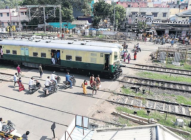 R Pazhaniappan, another commuter, noted that vehicles queue up at the spot for at least 100 metres. “How many vehicles can cross the crossing from both sides in just five minutes? Sometimes, traffic gets jammed even in the middle of the level crossing which is very dangerous as only suburban trains stop at Korukkupet and Express trains speed away without stopping.”