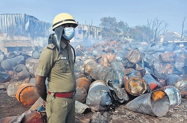 The officer said a basic safety feature in such warehouses is to compartmentalise chemical substances, which the company seems to have not followed. “Large quantities of highly inflammable chemicals should be kept separately.” The warehouse allegedly did not have sprinklers and fire-detection alarm. “The staff who spotted the fire alerted others and they tried to douse the fire. Had there been a fire detection device, sprinklers would have gone off.”