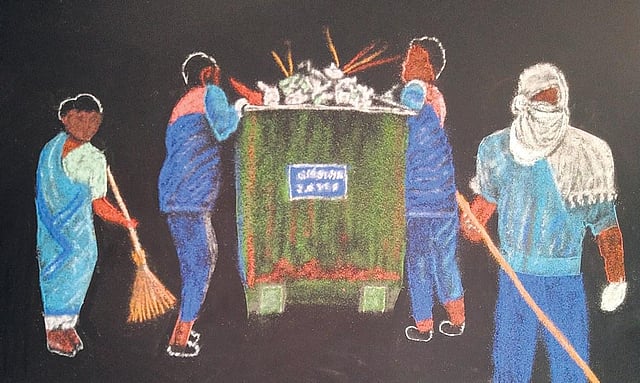 Through her work, Gandhimathy is urging people to be sensible and sensitive to the efforts of — the police force who patrol round-the-clock to ensure that rules are being followed; Corporation workers who sweep, clear the garbage and fumigate the streets to keep the environment safe and clean; and healthcare professionals, who work extra shifts to ensure lives are saved. Relentless and enthusiastic to make a difference, Gandhimathy now has a new morning routine.